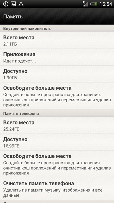 Настройки памяти. Кстати, по умолчанию пользователю доступно всего 25 Гб из 32.