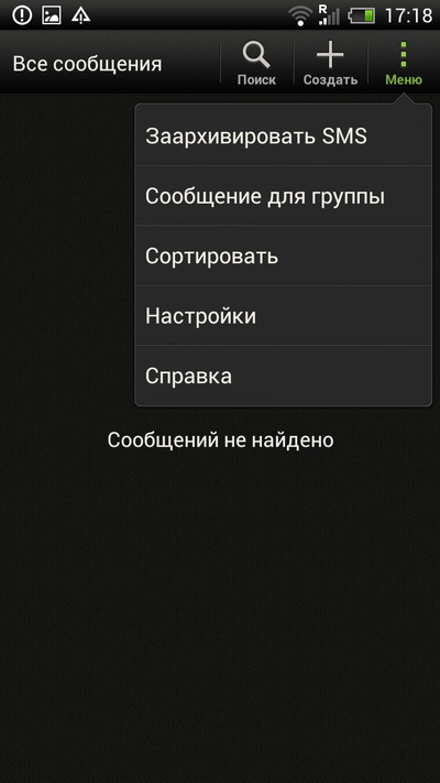 Собственное приложение. Неплохое. Есть интересные опции архивирования и восстановления SMS (может пригодиться при переустановке операционной системы на телефоне), опция сообщения для группы. Настройки у приложения - очень бедненькие, в отличие от Samsung.