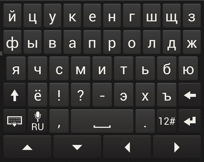 Клавиатура тут собственная, очень даже приличная. Есть клавиши курсоров внизу, переключение языка делается кнопкой, а не по пробелу. Правда, кириллицу разместили в четыре строки - это является проблемой для тех, кто привык к расположению букв в обычном трехстрочном режиме, однако здесь сделано достаточно грамотно - вниз ушли редко используемые буквы и всякие нужные знаки.