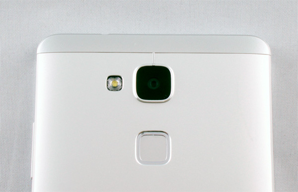 В верхней части - камера, вспышка и сканер отпечатка пальца.