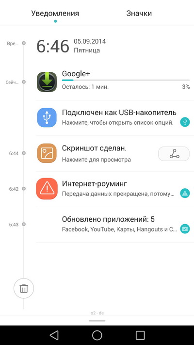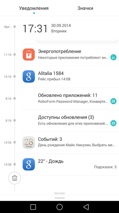 Область уведомлений снабжена удобной временной шкалой, которая показывает, когда было получено то или иное уведомление.
