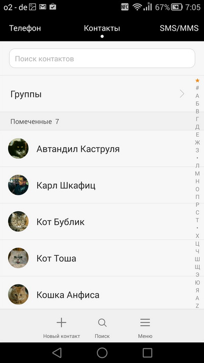 Отдельно фаворитов здесь нет, однако в списке контактов фавориты (помеченные) выводятся сверху. А в самом верху есть поиск контактов - это удобно.