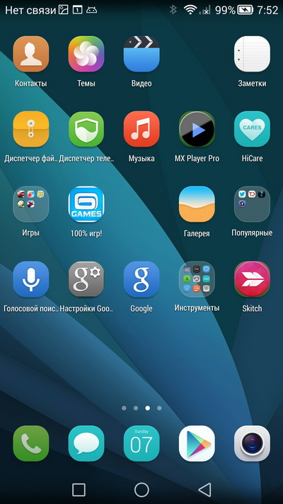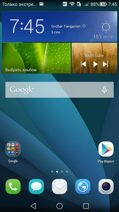 Здесь установлена собственная фирменная оболочка с приложениями от Huawei - Emotion UI 3.0 (EMUI 3.0). Эту оболочку мы с вами рассматривали в обзоре Huawei Ascend P6, но там была предыдущая версия.