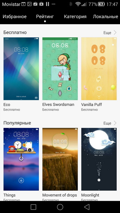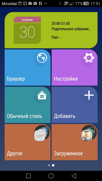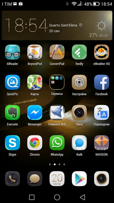 EMUI характеризуется простотой и даже определенной аскетичностью в оформлении, а кроме того, тут, как и в оболочке Lenovo, нет отдельных окон для иконок приложений: пиктограммы абсолютно всех приложений располагаются на рабочих столах.