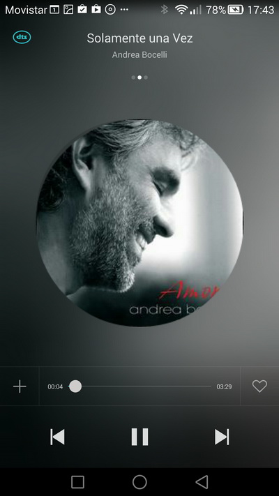 Воспроизведение конкретного трека. Если пролистнуть вправо - там еще и текст песни будет выводиться, если он загружен из Интернета.