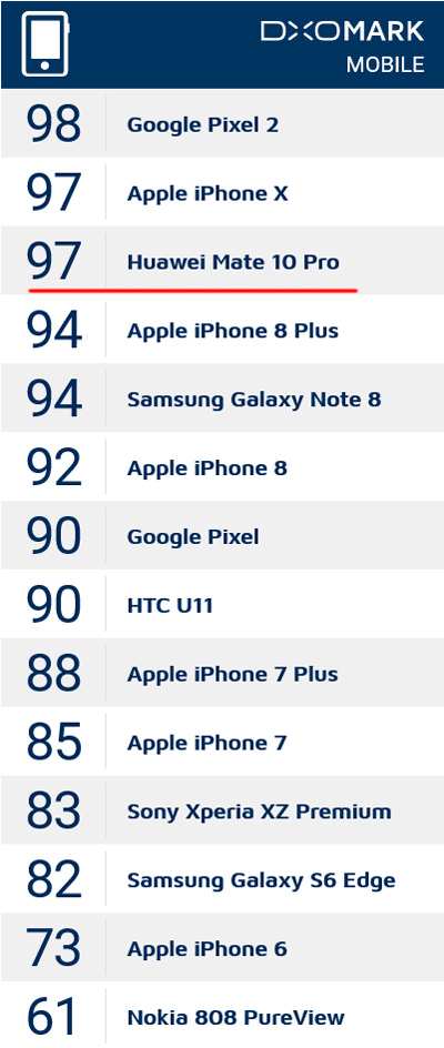 Может потому, что сравнивать надо в одинаковых условиях, а не так, что одним смартфоном фоткали в облачную погоду, другим в солнечную. Однако Mate 10 действительно фотографирует отлично. Вне зависимости от их баллов.