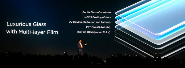 Лицевая часть накрыта стеклом 3D - оно, в отличие от 2.5D, где у цельного куска стекла снимаются фаски, состоит из нескольких стеклышек с изогнутыми краями.