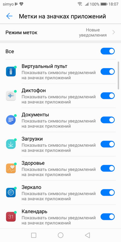 Уведомления на значках приложений.