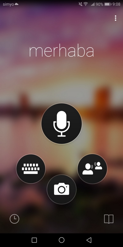 Вот его интерфейс: микрофон, клавиатура, распознавание изображения с камеры, режим разговора (это для двух аналогичных смартфонов Huawei).