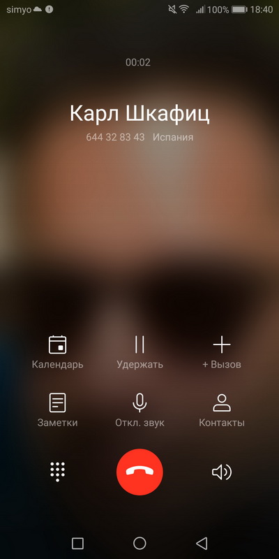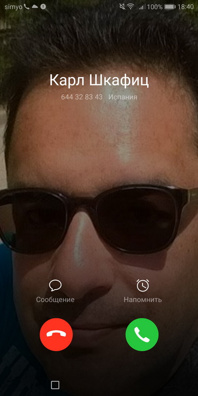 Входящий звонок - изображение показывается на весь экран.