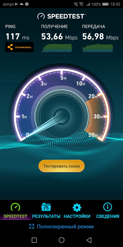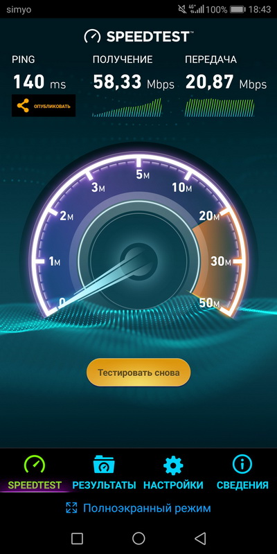 Скорость работы мобильного Интернета - отличная, больше ожидаемой для данных условий.