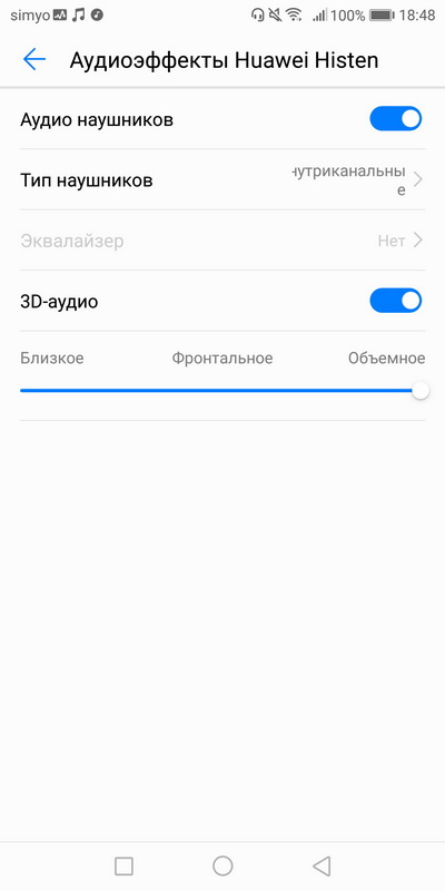 В настройках можно включать специальные аудиоэффекты Huawei Histen, где также определяется тип наушников, подключается эквалайзер и так далее. С помощью этих настроек звук действительно можно улучшить (хотя и не кардинально), но тут надо подбирать параметры под каждый конкретный случай: тип композиций, тип наушников и так далее.