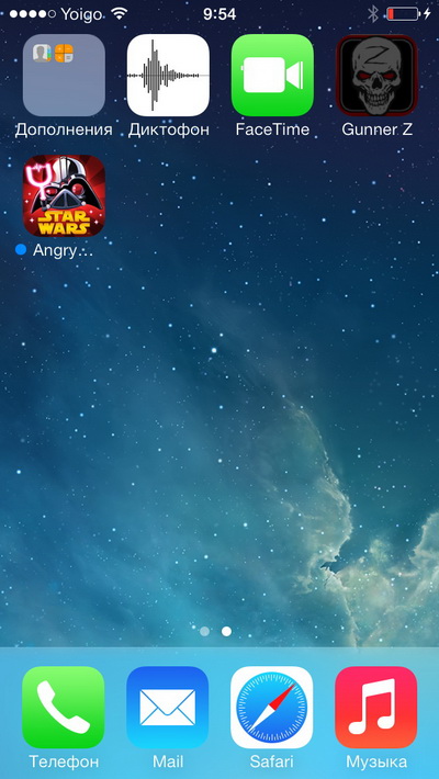 Главный десктоп версии iOS 7 - с ее новыми иконками и ненавистью главного дизайнера Apple Джони Айва к объектам с тенями (по-научному имитация объектов с тенями называется скевоморфизм).