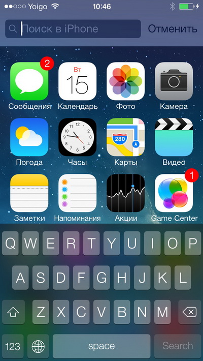Нажатие кнопки "Домой" на главном десктопе теперь не приводит к появлению окна поиска, оно появляется при жесте пальцем сверху вниз по любой части экрана.