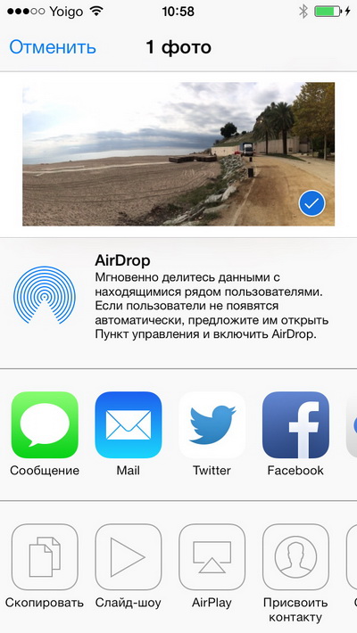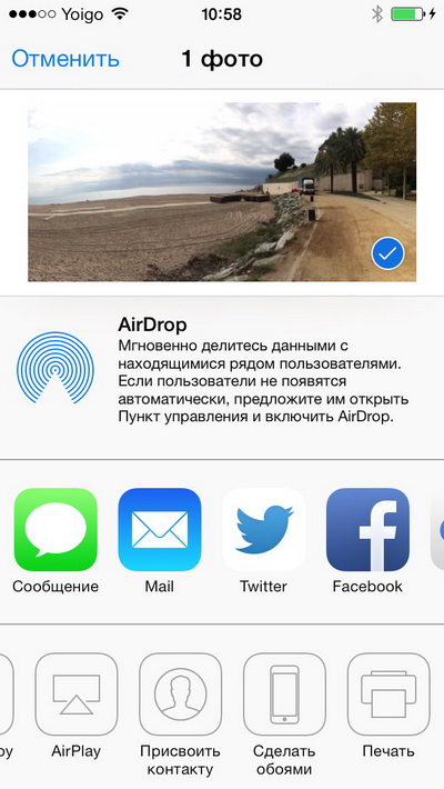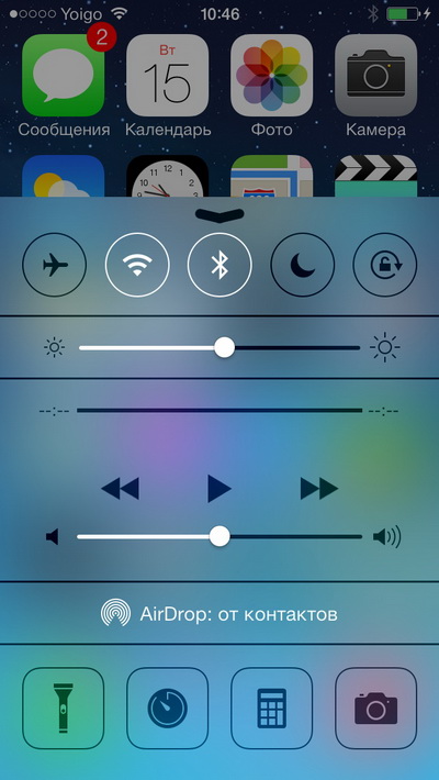 А жестом от нижнего края экрана вверх вызывается панель настроек приложений и переключателей (здесь это называется "Пункт управления") - вообще, это удобно. Я очень одобряю, что они это подсмотрели у Android и сделали у себя.