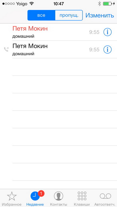 Журнал звонков.