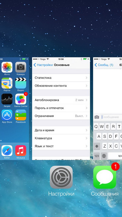 Список запущенных (недавно запущенных) программ по двойному нажатию кнопки "Домой" теперь выглядит вот так.