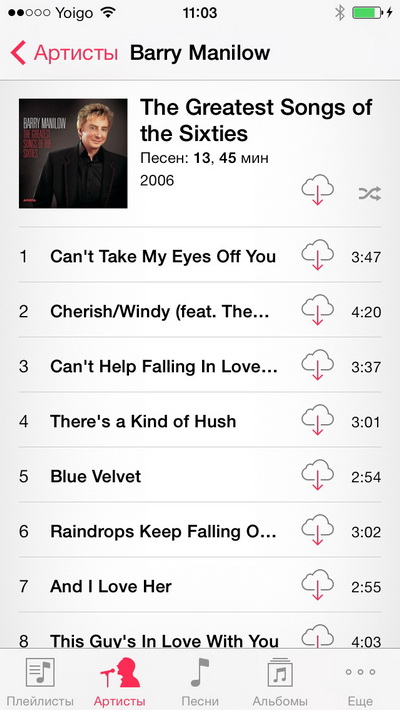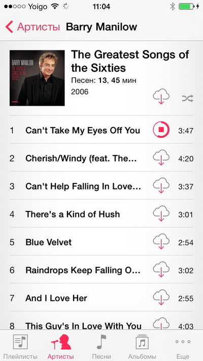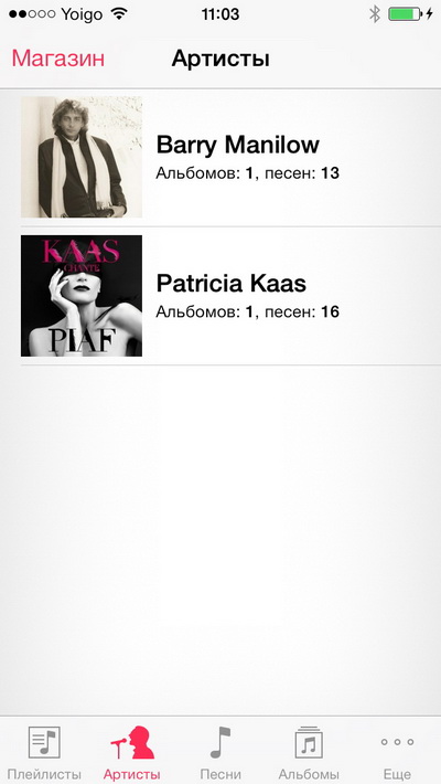Режим отображения музыки: Artists