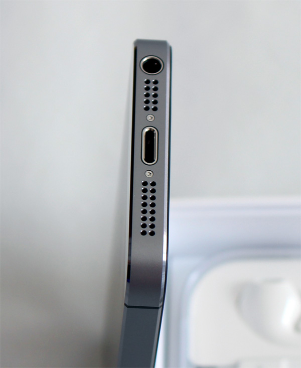 Нижний торец - док-коннектор Lightning, динамики, выход для наушников (гарнитуры).