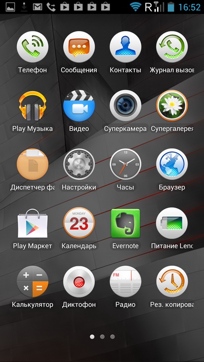 Подробно об оболочке и приложениях я писал в обзоре Lenovo IdeaPhone A820, поэтому тут пробежимся крупным помолом и обратим внимание на специфические приложения и особенности для модели K900.