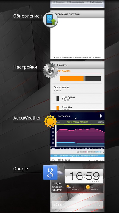 Последние запущенные приложения.