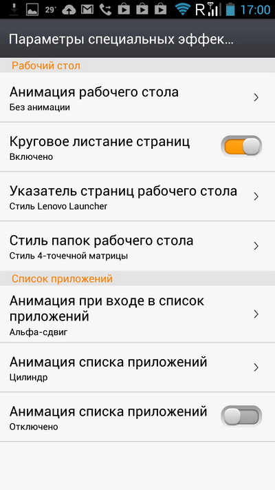 Настройка анимационных эффектов смены десктопа.