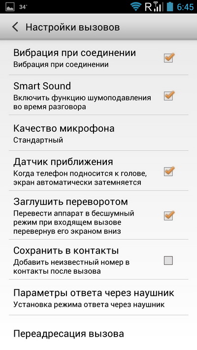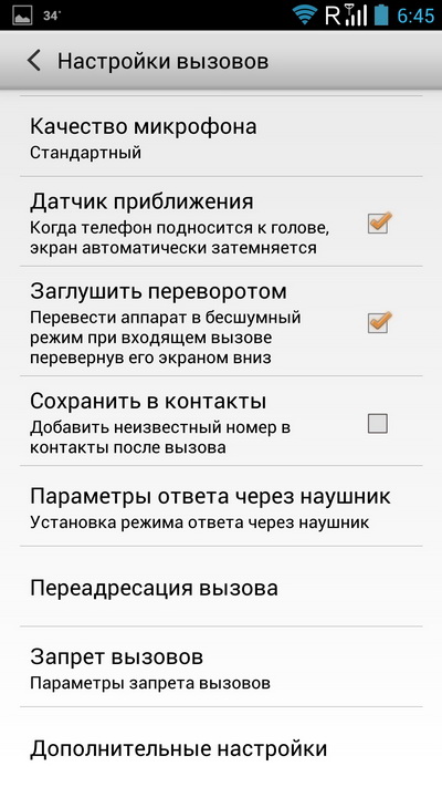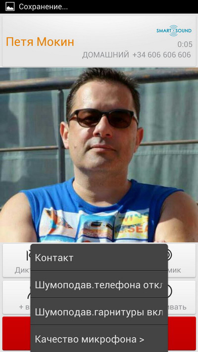 Меню звонка. Можно включать шумодав (действительно немного улучшает слышимость на улице), регулировать уровень микрофона.