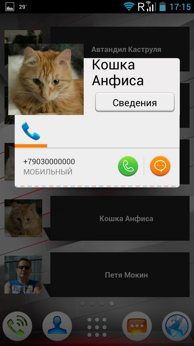 Полезные контакты можно выводить на десктоп в виде вот такого виджета. Не самый удобный виджет, скажем прямо. А чего не на весь экран?