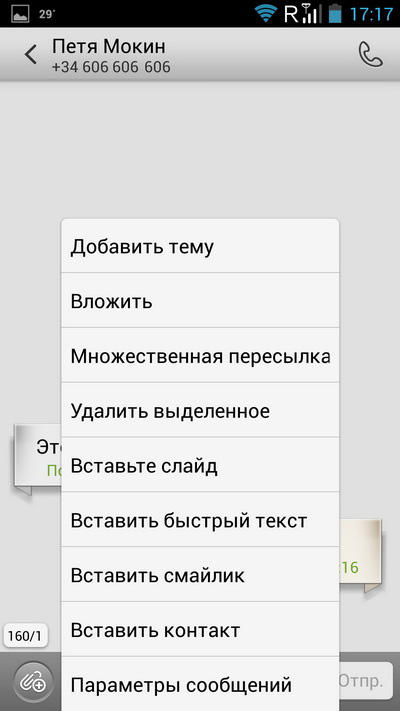 Опции разговора.