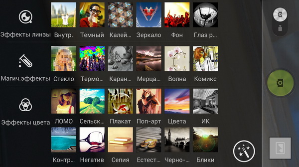Настройка параметров специальных эффектов.