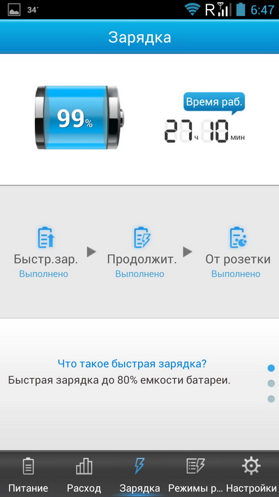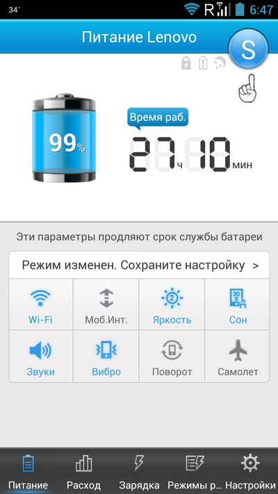 Второй рабочий стол с виджетом настройки оптимального расхода энергии.