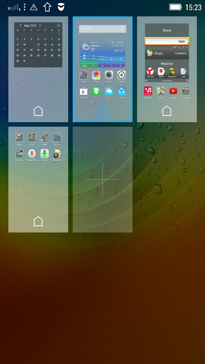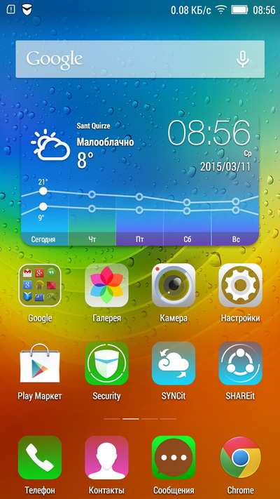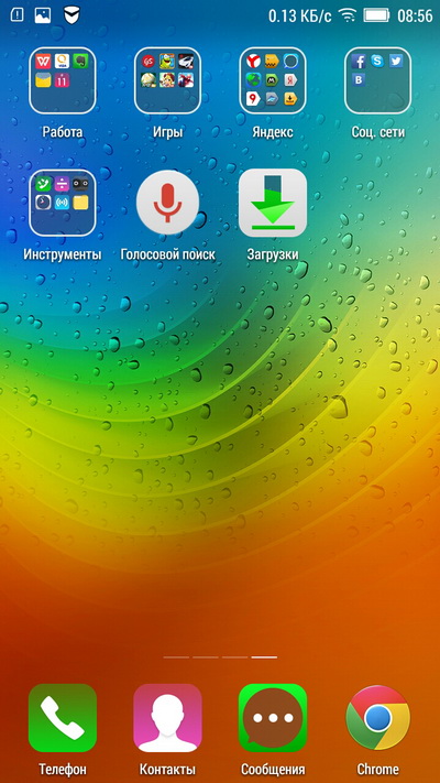Здесь установлена собственная оболочка разработки компании Lenovo под названием Vibe UI, которая может гибко настраиваться под предпочтения пользователя. В этой оболочке не предусмотрено отдельного окна для иконок приложений, поэтому все иконки приложений находятся на десктопах.