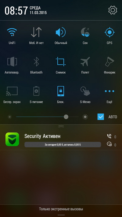 Также сама область уведомлений гибко настраивается и пользователь может включать-выключать уведомления от различных приложений и задавать приоритеты уведомлений от приложений. Обратите внимание, что в статусной строке даже можно включить текущую скорость передачи данных.