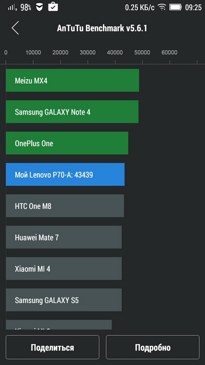 Интерфейс системы работает плавно, задержек и тормозов я не замечал. Приложения работают шустро. AnTuTu выдал ему 43 439 попугаев.