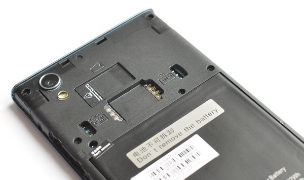 Под крышкой - несъемный аккумулятор, два слота под microSIM и слот для SD-карты.