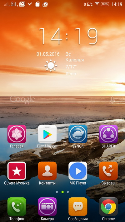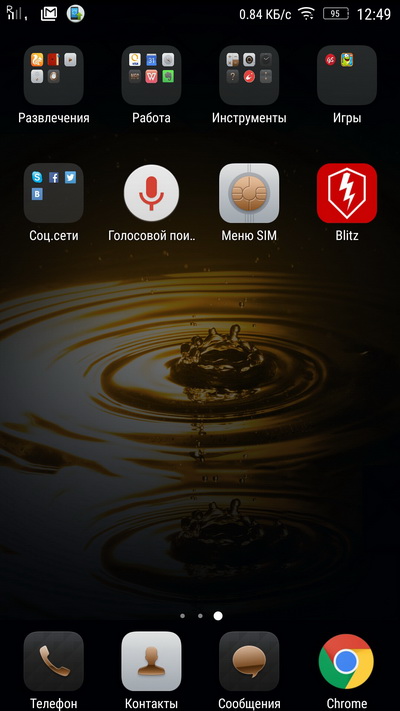 Вот так он выглядит. Три пиктограммы снизу можно менять, но набор приложений сильно ограничен: грубо говоря, их всего восемь.