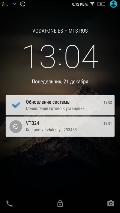 Окно блокировки с возможностью перехода в телефонное приложение или приложение "Камера".