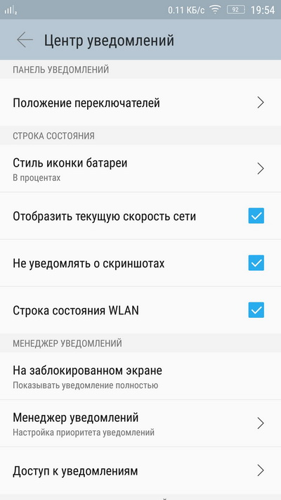 Настройки центра уведомлений.
