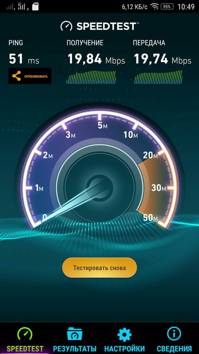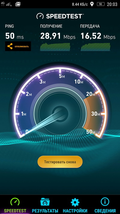 Тест работы Wi-Fi и 4G показали практически максимальные для условий тестирования значения.