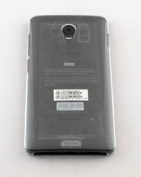 Я уж и не знаю, почему в описании линейки Vibe компания Lenovo напирает на термин "премиум-дизайн". Никакого премиума я тут не вижу даже рядом, однако дизайн у смартфона, скажем так, вполне пристойный. Крепенький такой дизайн нормальной бизнес-лошадки. Ну разве что кнопка "Домой" (она же сканер отпечатка пальца) с металлической окантовкой выгодно отличает серию Vibe от бюджетных моделей, где кнопка "Домой" просто сенсорная, что значительно менее удобно. Остальные две сенсорные кнопки "Назад" и "Список запущенных приложений" маркировку не имеют, но при работе подсвечиваются очень и очень тусклым светом. По-моему, тут проще было маркировку сделать. Впрочем, я же забыл, это же "премиальный дизайн"...