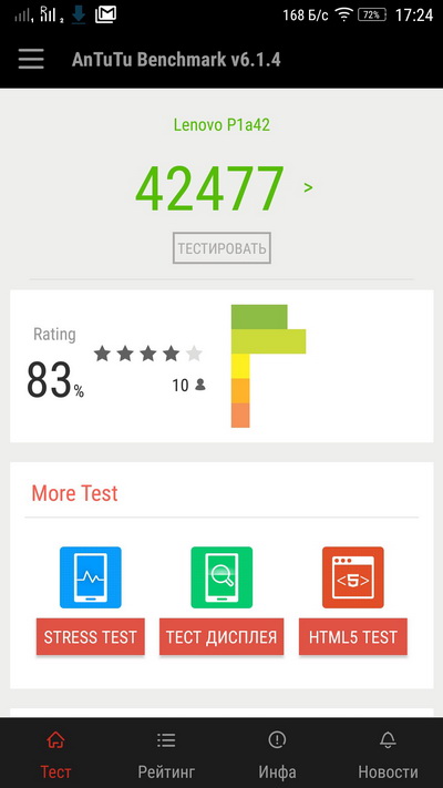 Платформа тут средняя по быстродействию, соответственно, индексы получились также вполне средненькие.