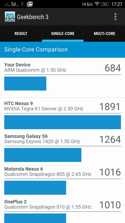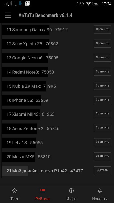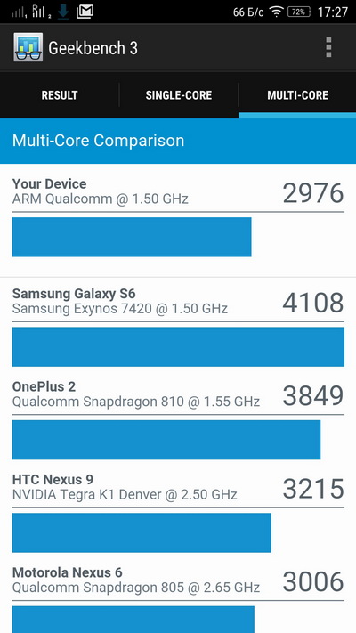 Индекс по PCMark - 4027. Кстати, у Motorola Moto X Play, который дороже где-то на $100, этот индекс - 4042.