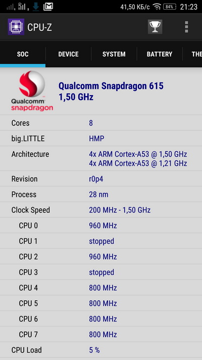Процессор: Qualcomm MSM8939 Snapdragon 615 (4x1.5 GHz,