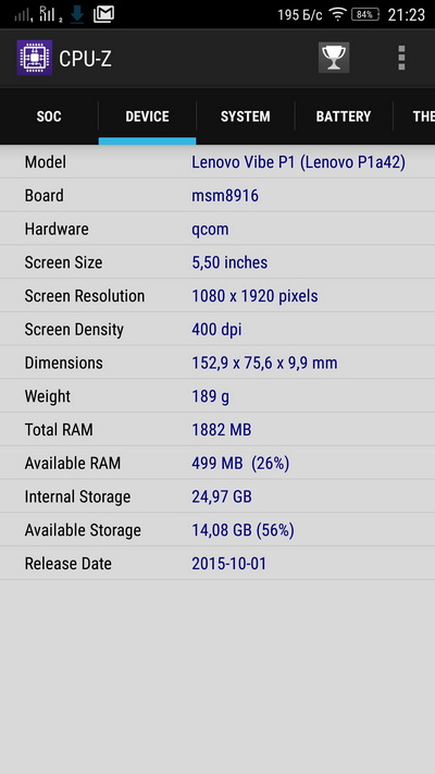 Ну и есть расширенная версия Lenovo Vibe P1 Turbo: она стоит на 800 рублей дороже и у нее 3 Гб оперативной памяти; других отличий я не заметил.