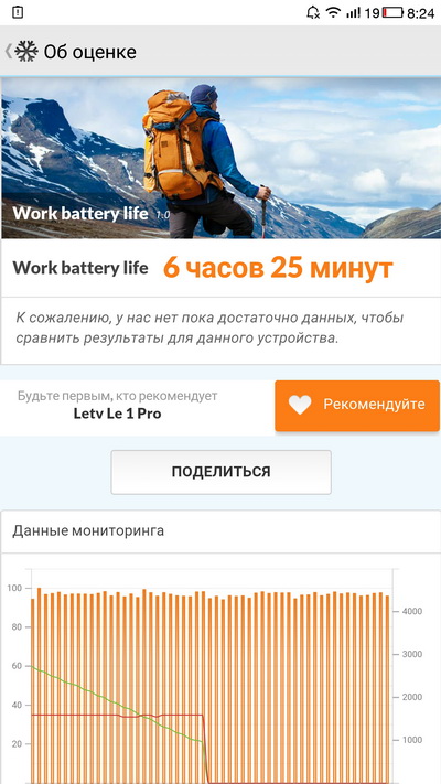 Синтетический тест по PCMark. Неплохо. У Galaxy S6 edge+ - 7 часов 41 минута.