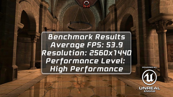 Ну и результат теста в Epic Citadel: под 54 FPS на разрешении 2К - это очень хорошо.