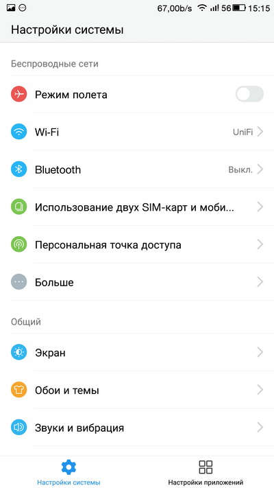 Настройки приложений вынесены в отдельный раздел - это удобно.