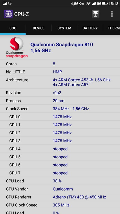 Процессор: Snapdragon 810 MSM8994, 2 ГГц