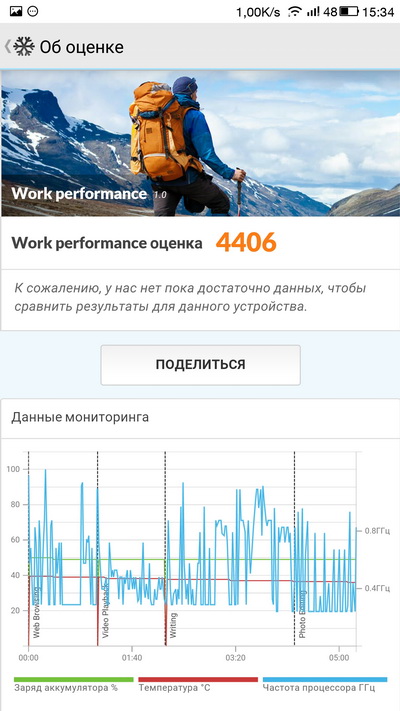 Ну и индекс PCMark - 4406. (У Lenovo Vibe P1 он ненамного ниже - 4027.)