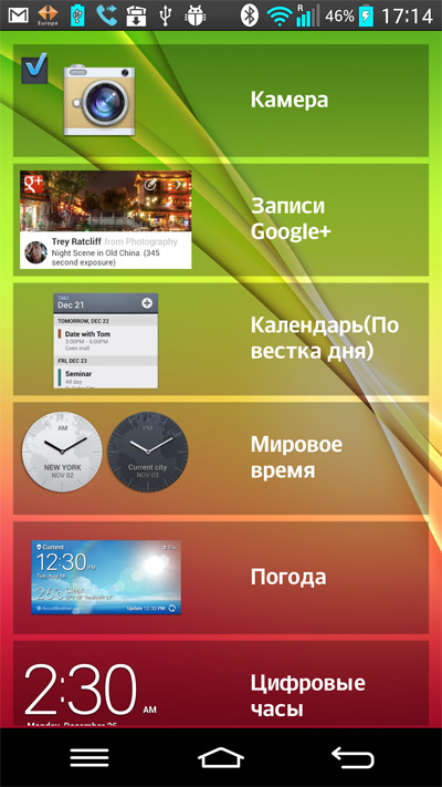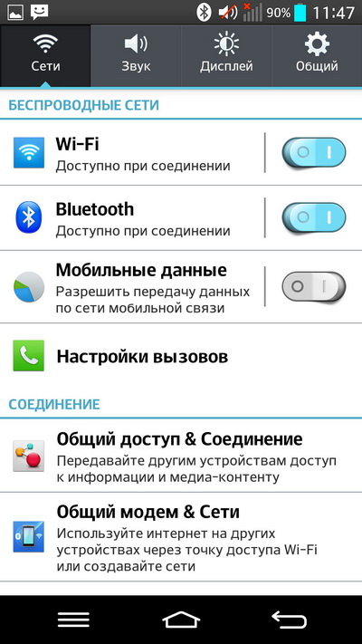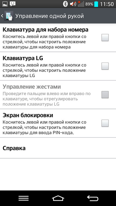 Смартфон работает на Android 4.2.2, однако здесь установлена собственная оболочка и заменены все системные приложения. Также установлено несколько специфических приложений разработки LG и других компаний.